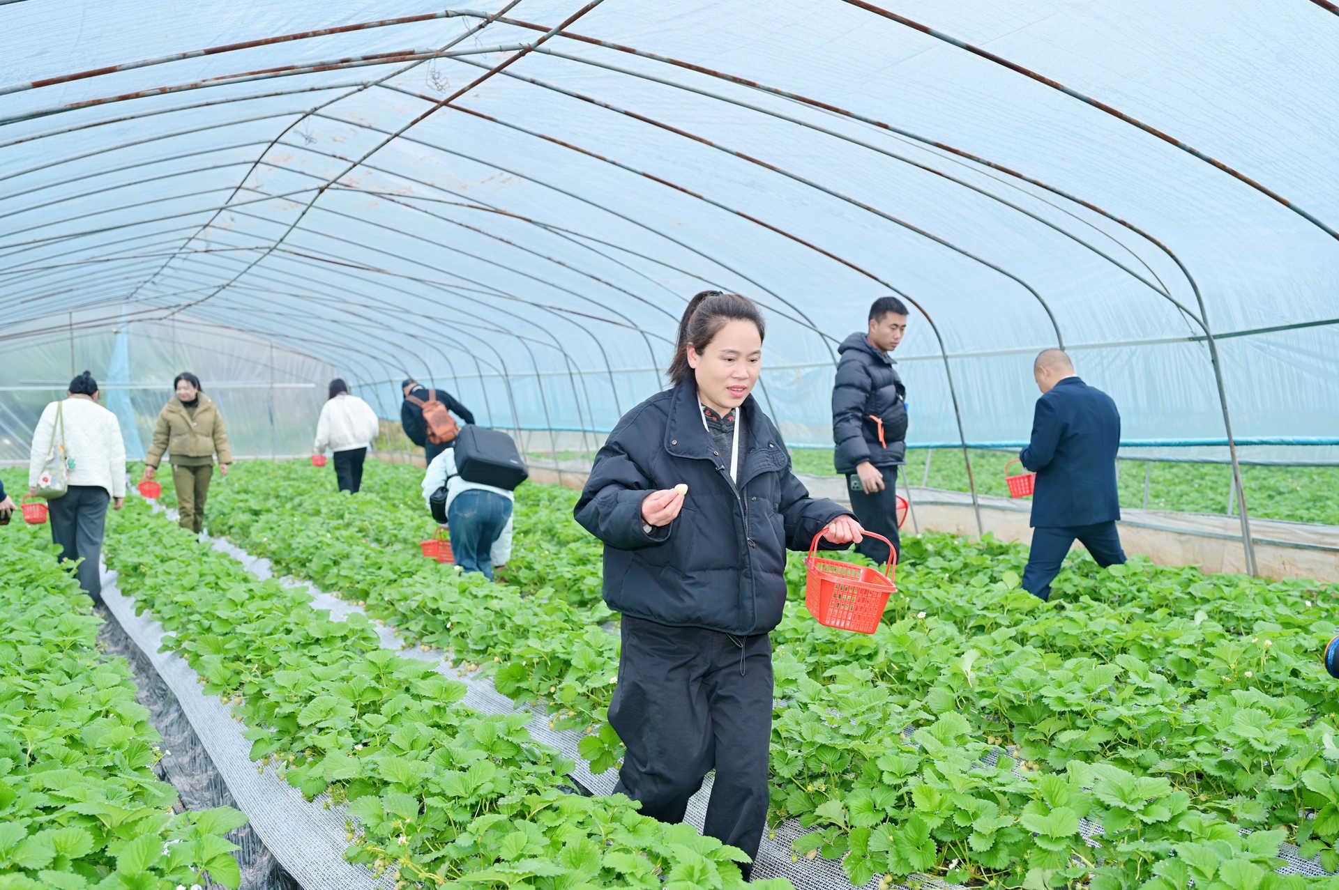 初冬的成都东部新区,薄雾笼罩着广袤的田野。11月27日,“星乡村·星农人‘锦绣天府·安逸四川’网络名人公益行”采风团走进石板凳街道菜子村,体验采摘草莓的乐趣。