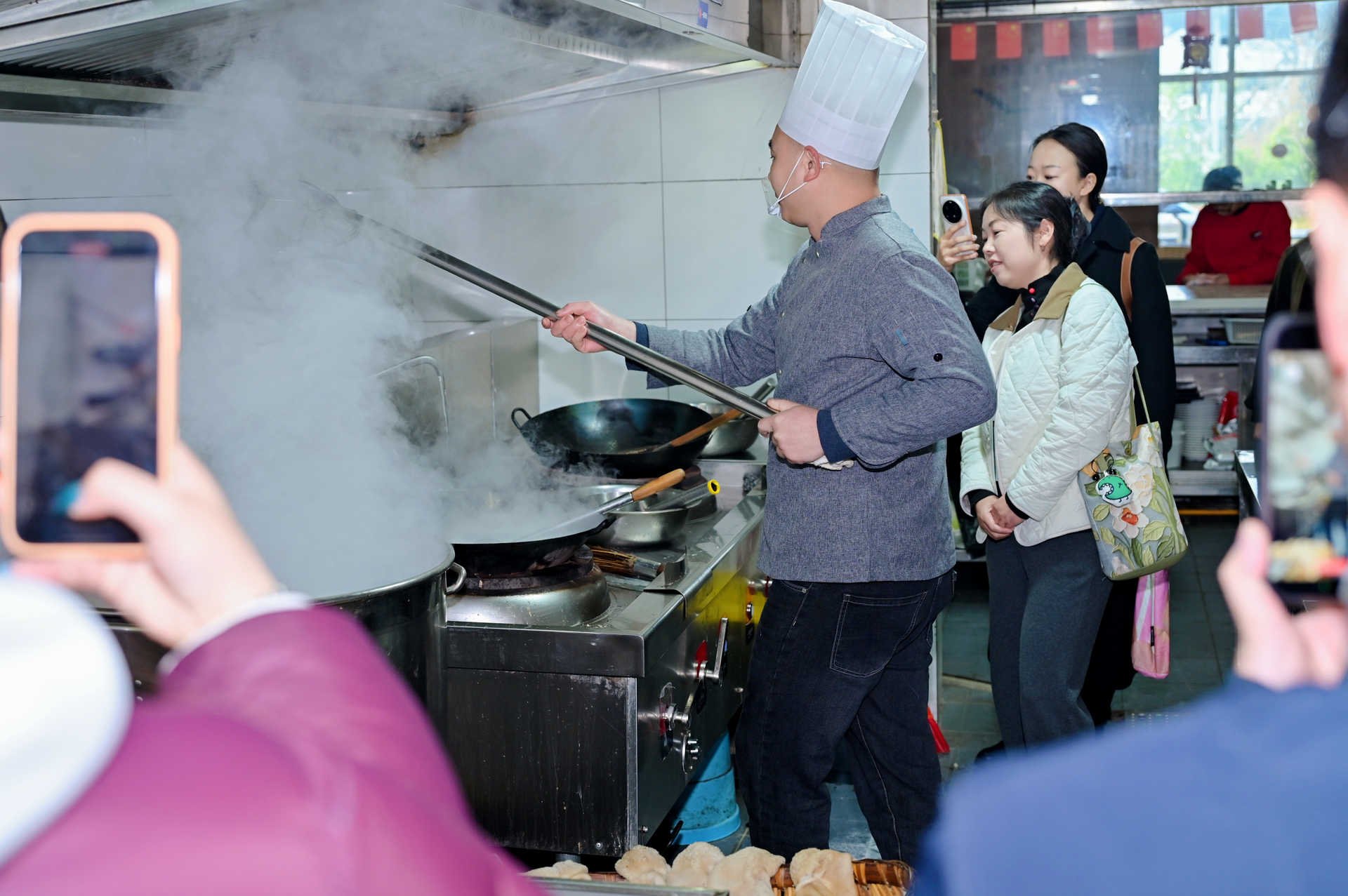 何建东品尝后惊讶地说:“看到奶白色的汤,我以为加了牛奶,但喝了一口,我尝出了明显的鲫鱼鲜味。这种‘鱼+羊’组成的鲜,确实很有特色!”