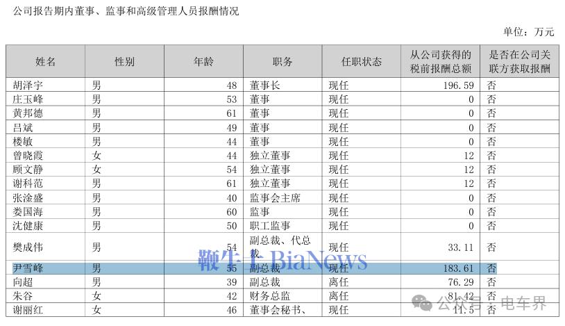 其中,尹雪峰2024年的年薪为183.61万元。(转载自:电车界)